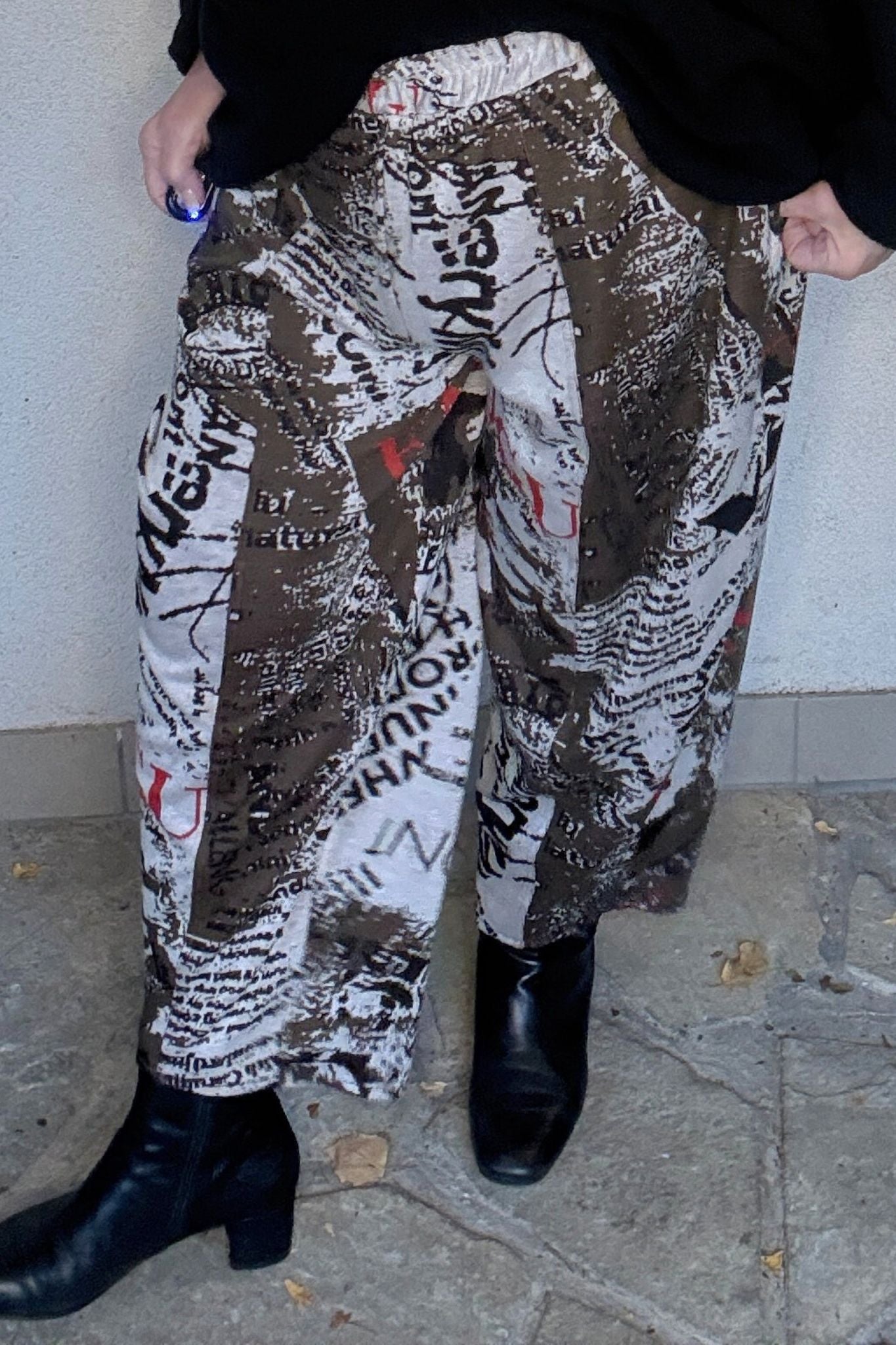 Diese weiter geschnittene Print-Hose von ABSOLUT ist ein echtes Statement-Piece für alle, die außergewöhnliche Mode lieben.