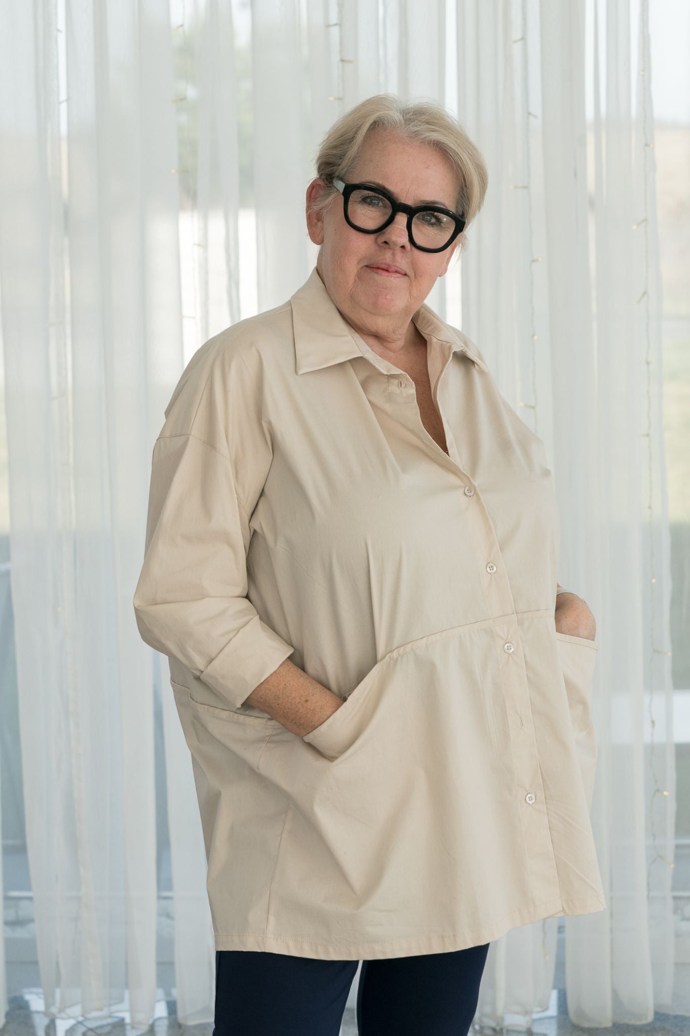 Der legere Schnitt fällt wunderbar locker und schmeichelt jeder Figur – ganz ohne Einengen oder Ziehen.