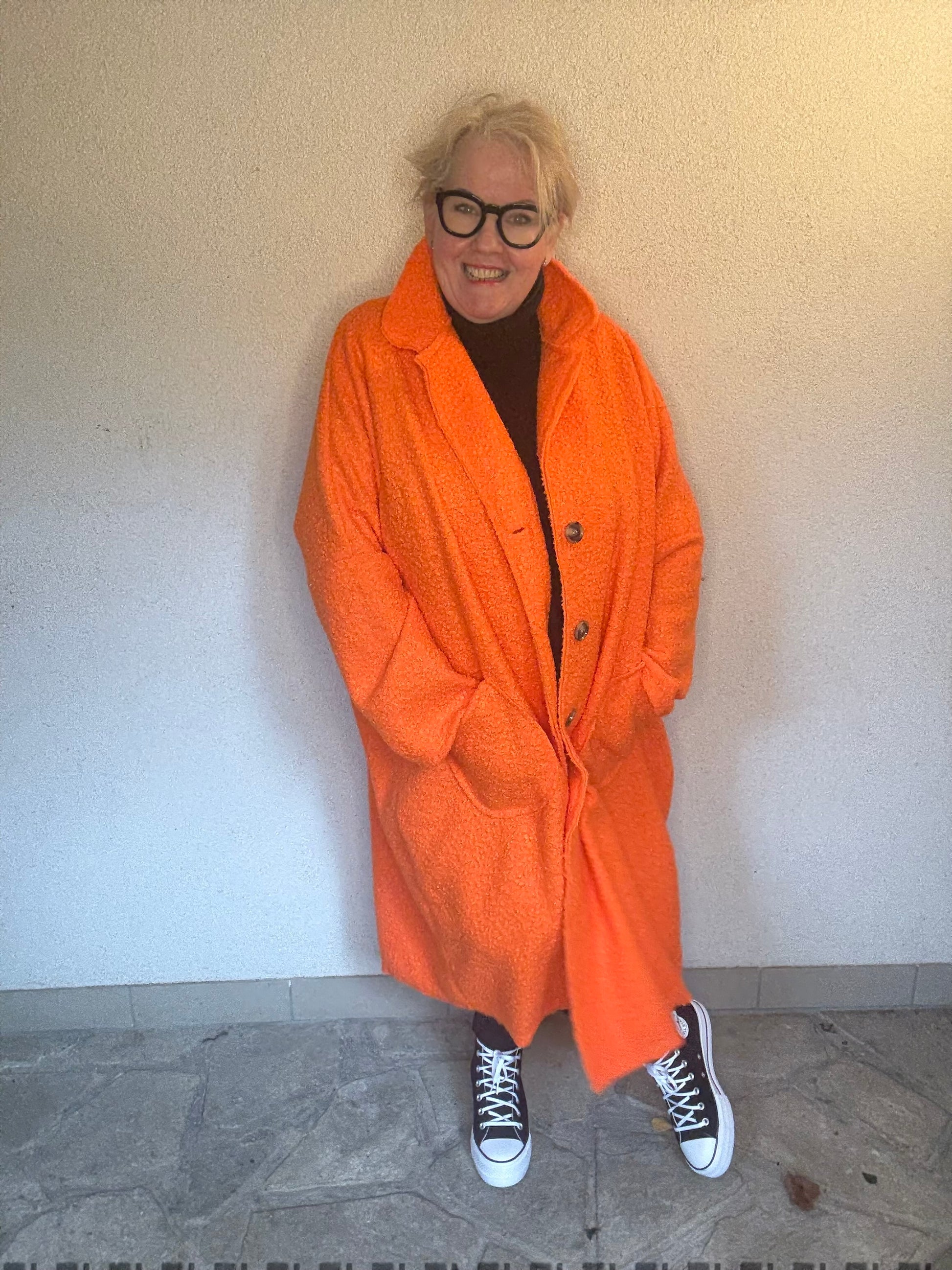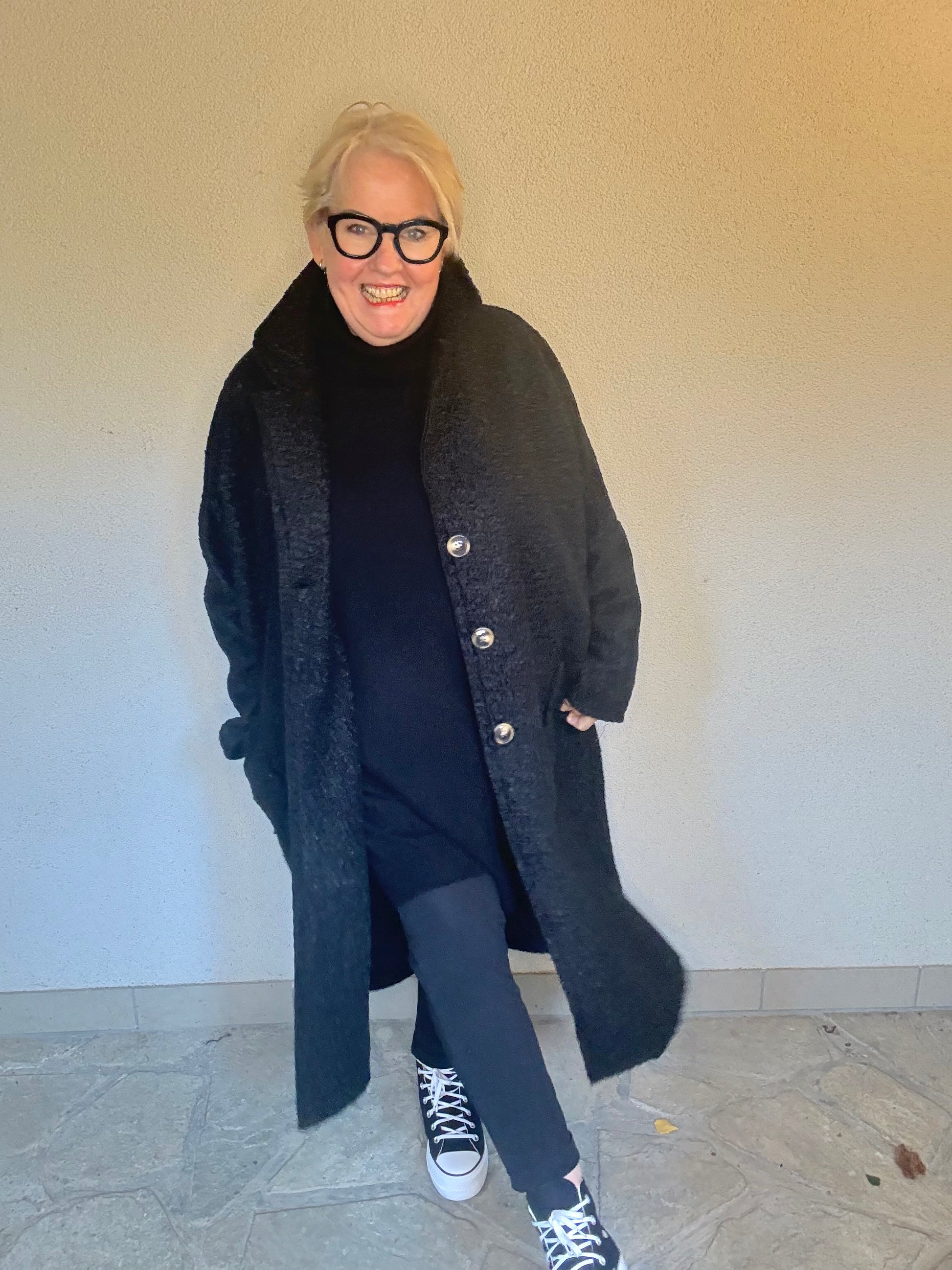 Unser „Cozy Statement“-Mantel ist oversized, superkuschelig und ein echter Hingucker.
