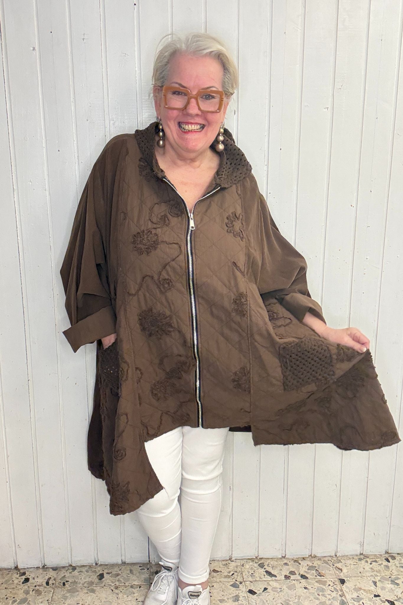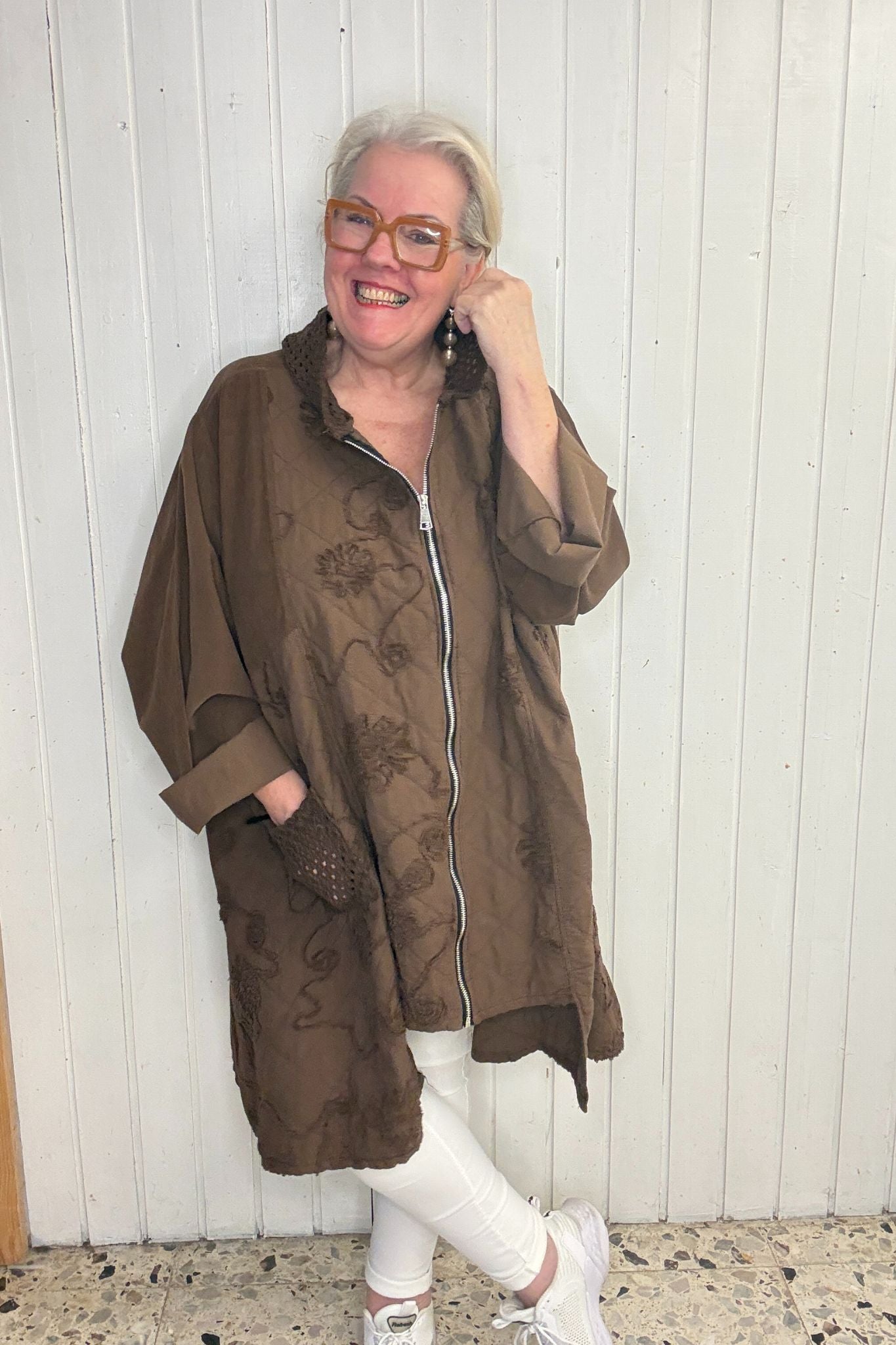 Leichte, locker geschnittene Oversize-Jacke mit strukturierter Oberfläche und dekorativen Details.