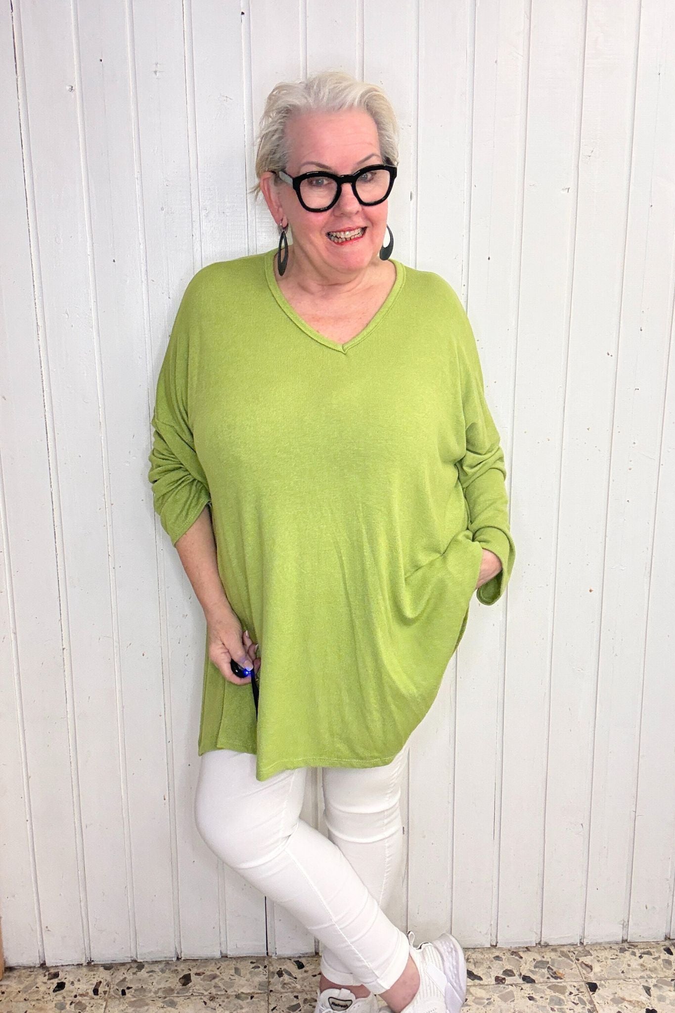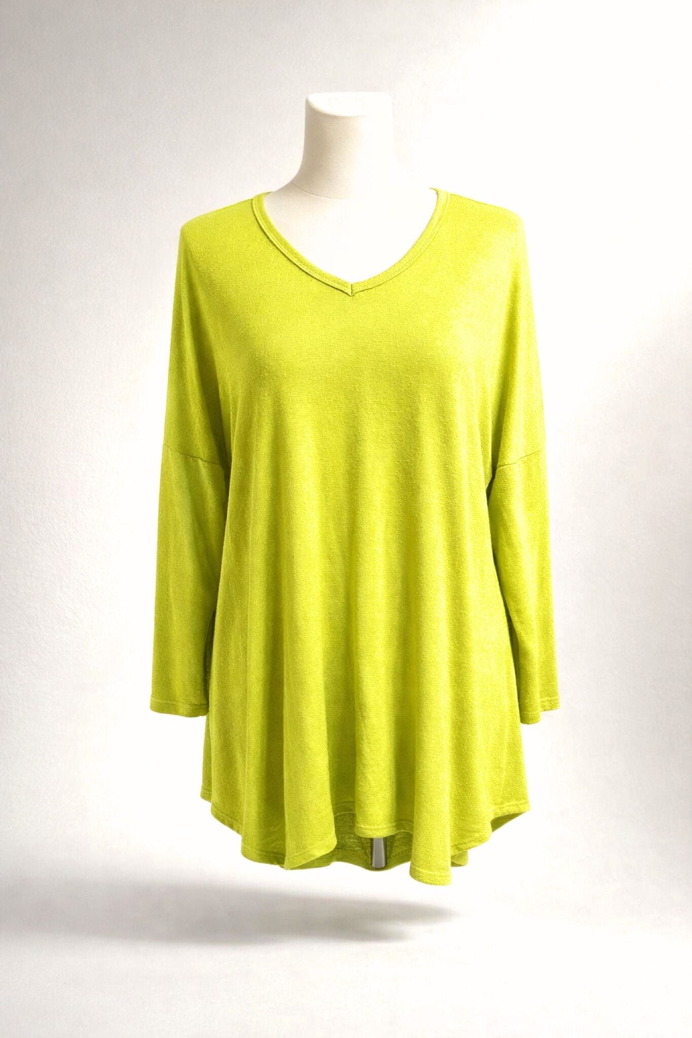 Locker fallendes Oversize-Oberteil mit V-Ausschnitt und fließender Silhouette.