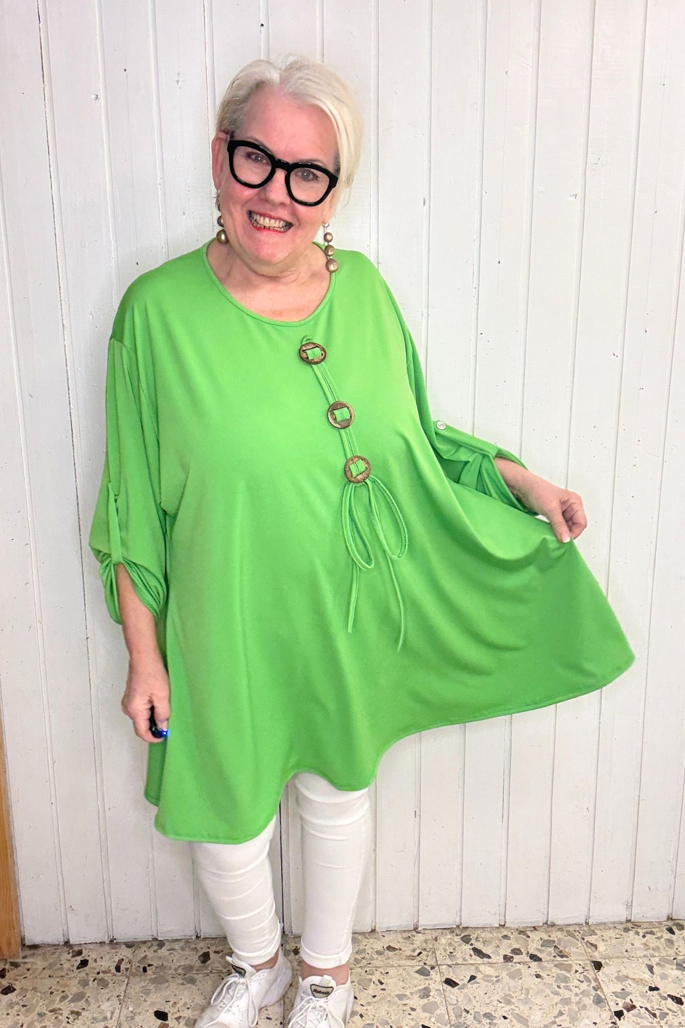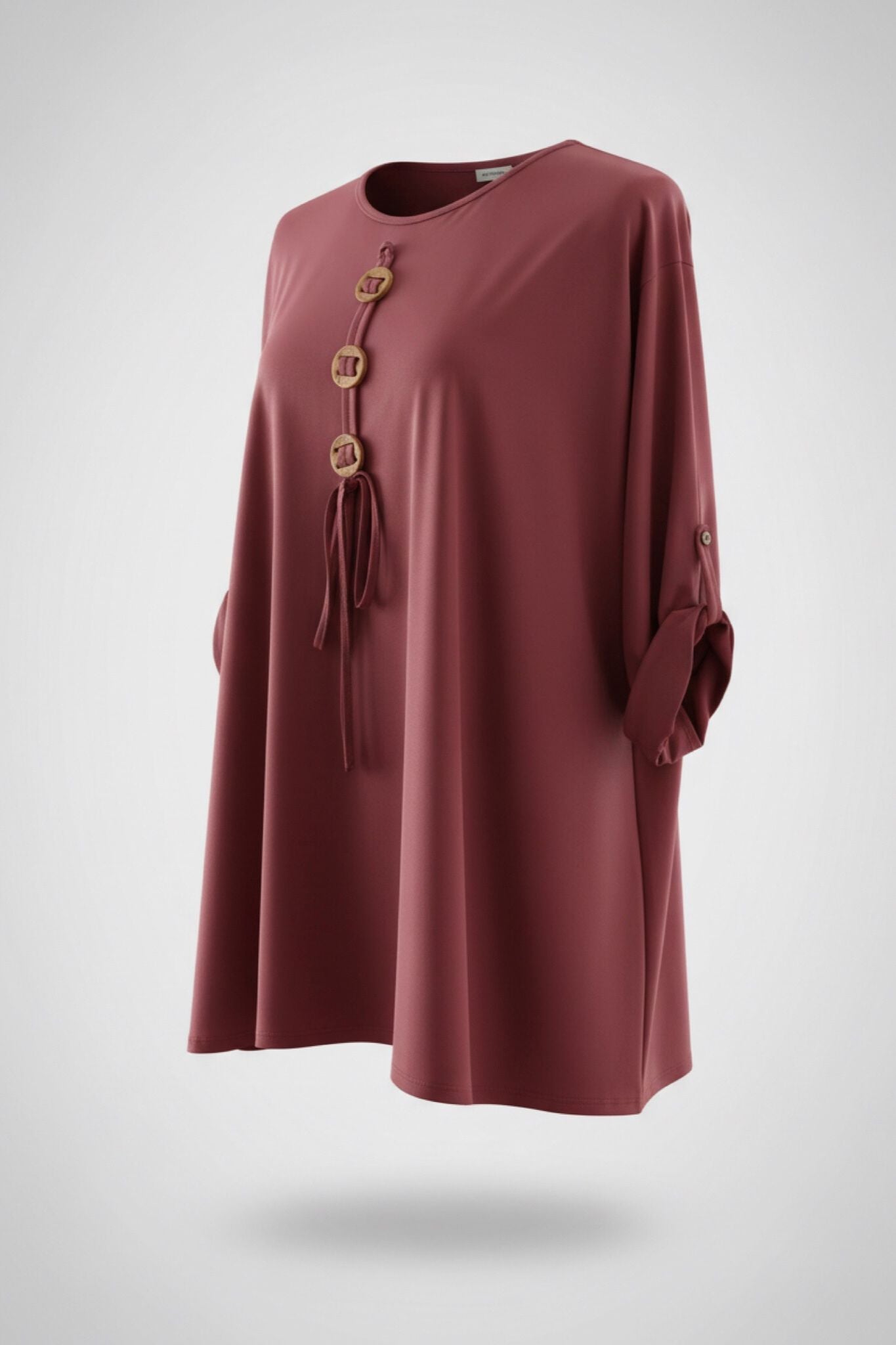 Locker fallendes Oversize-Oberteil aus weicher Viscose mit dekorativem Knopf-Detail und fließender Silhouette.