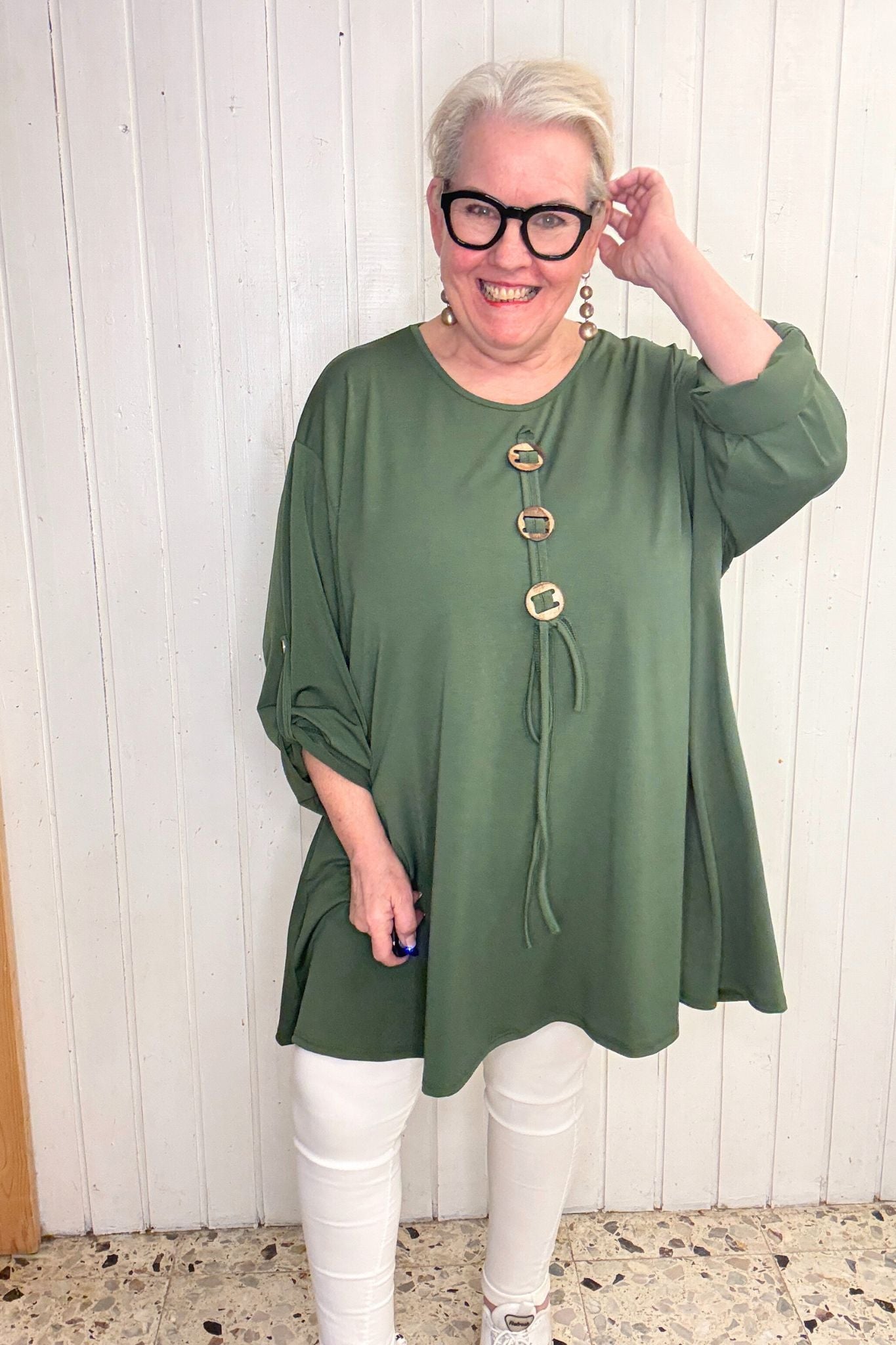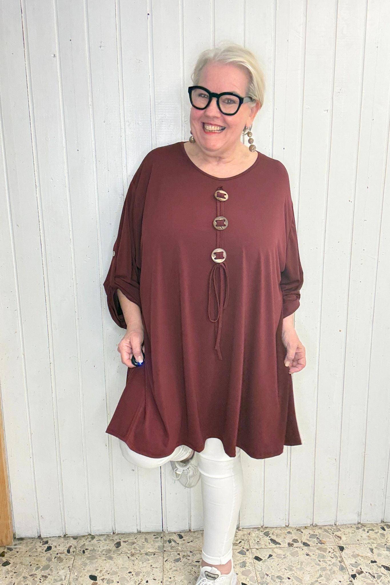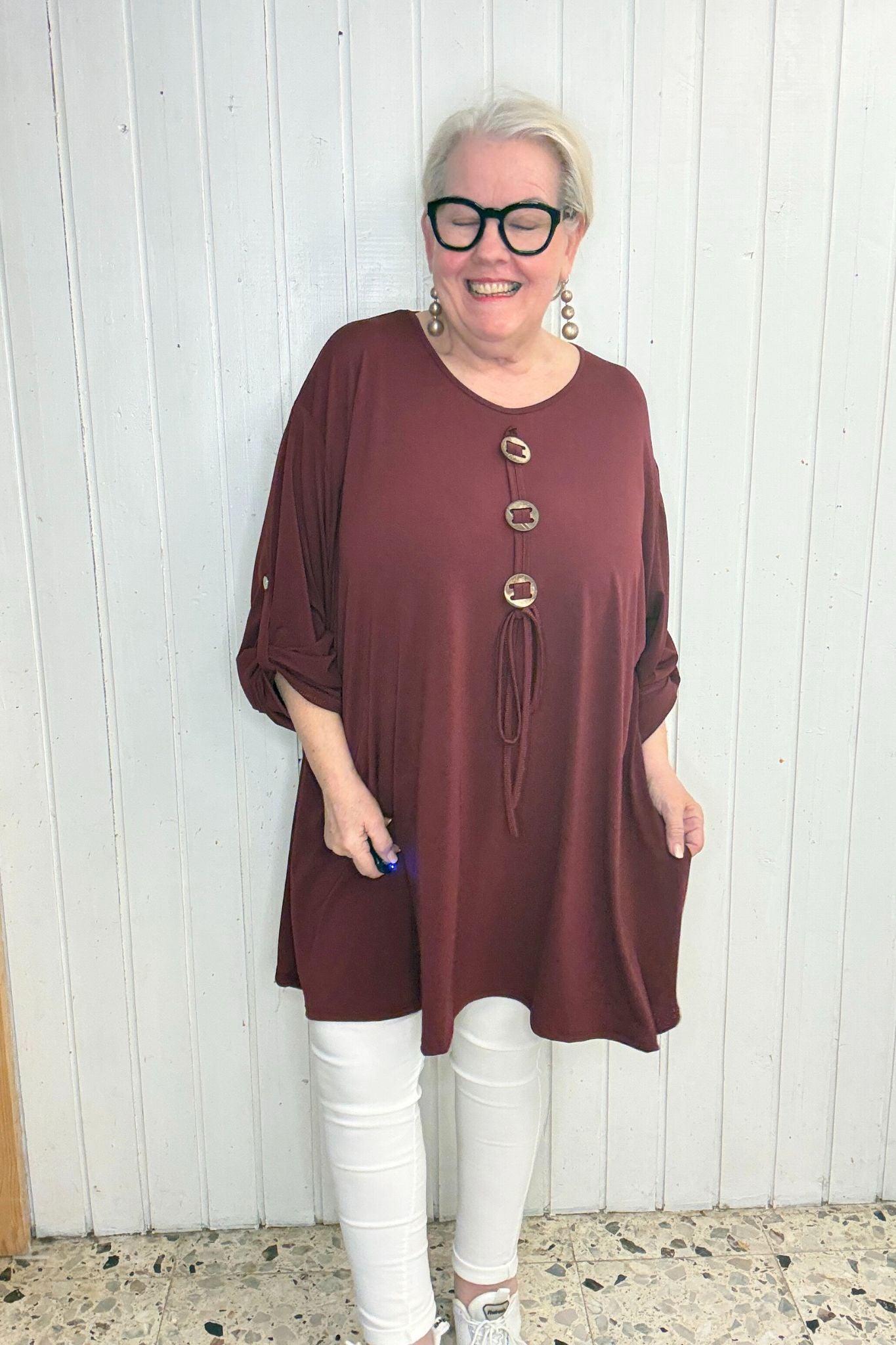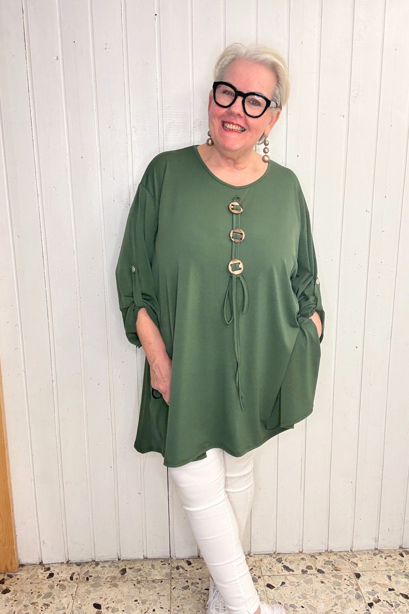 Oversize Oberteil mit Knopf-Detail