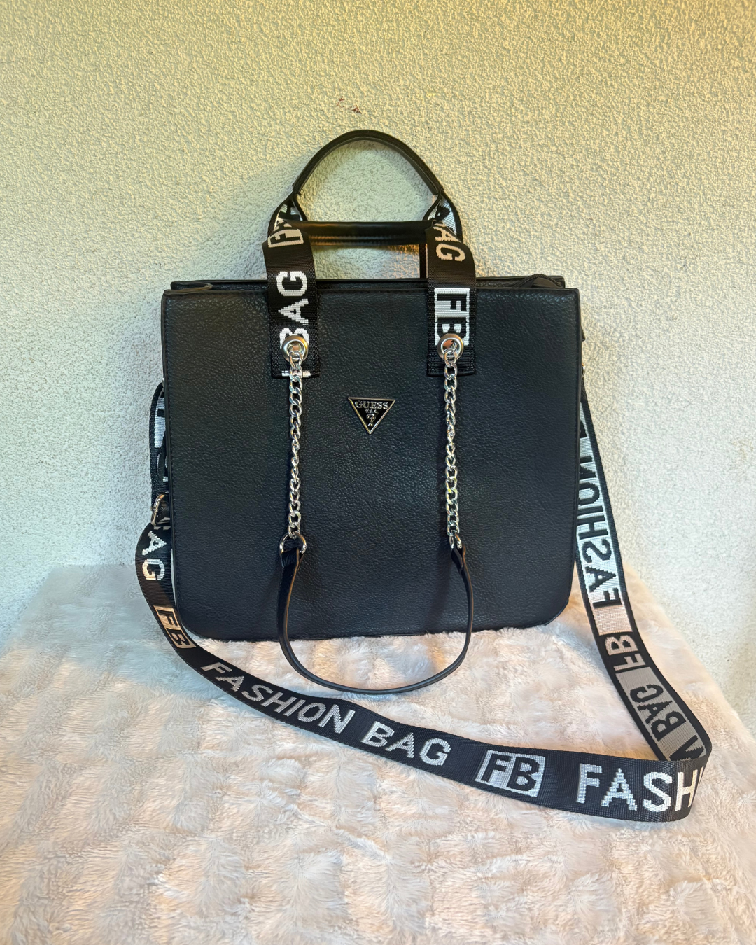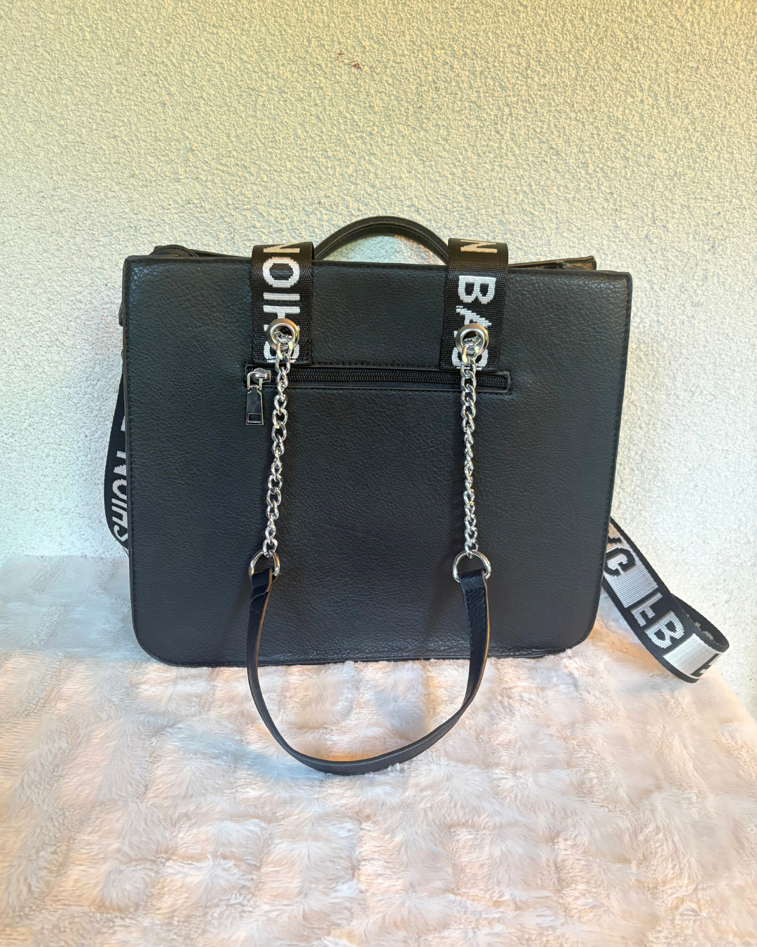 Schwarze Kunstleder Handtasche mit Ketten-Details & Fashion-Strap 🖤👜🖤