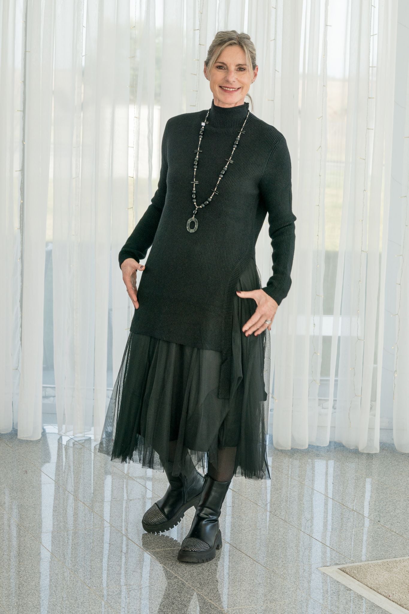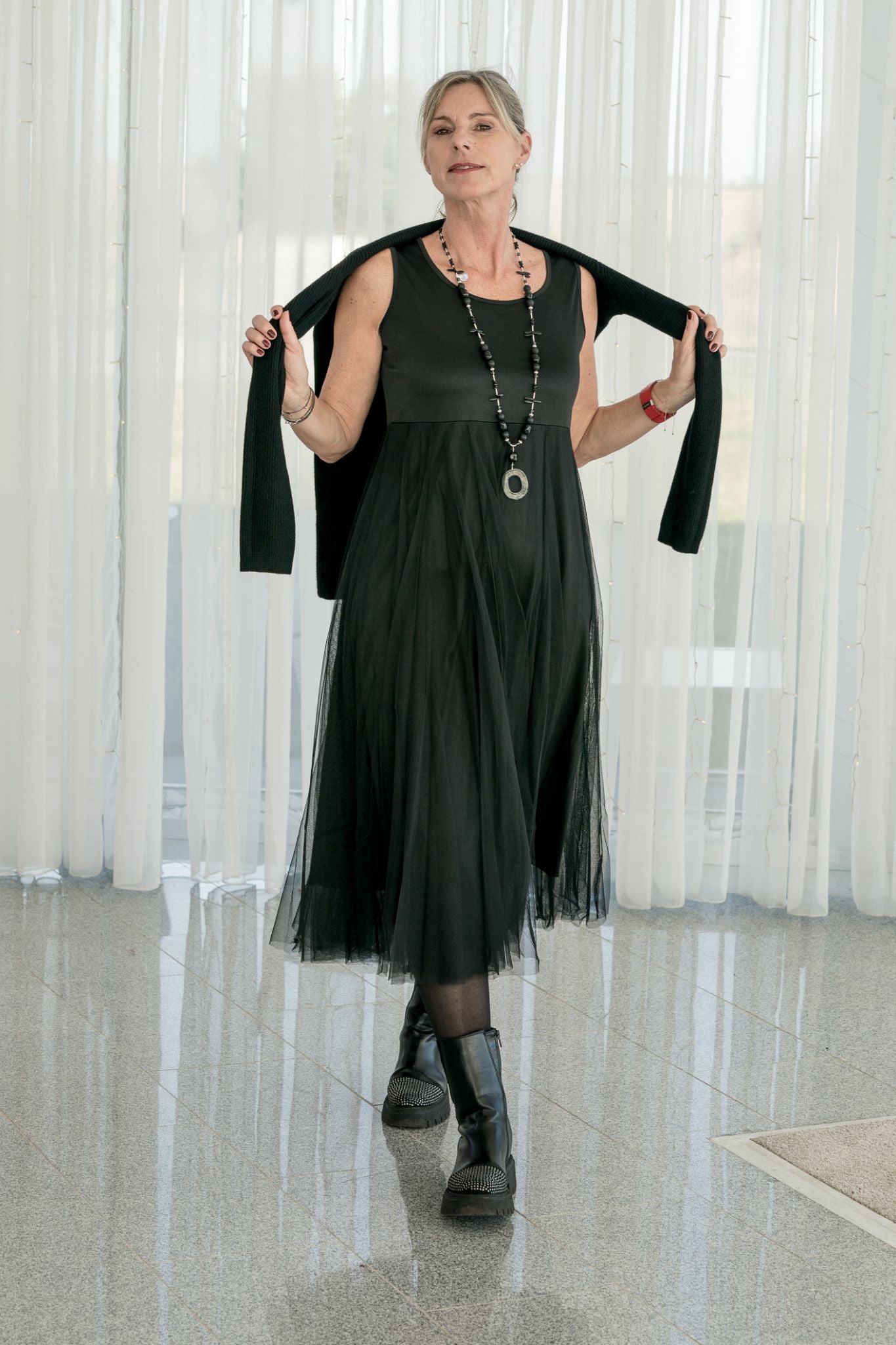 Im Sommer das Tüllkleid mit Jeansjacke oder schlichtem Shirt kombinieren – im Winter mit deiner Lieblings-Strickjacke oder Boots für einen modernen Layer-Look.